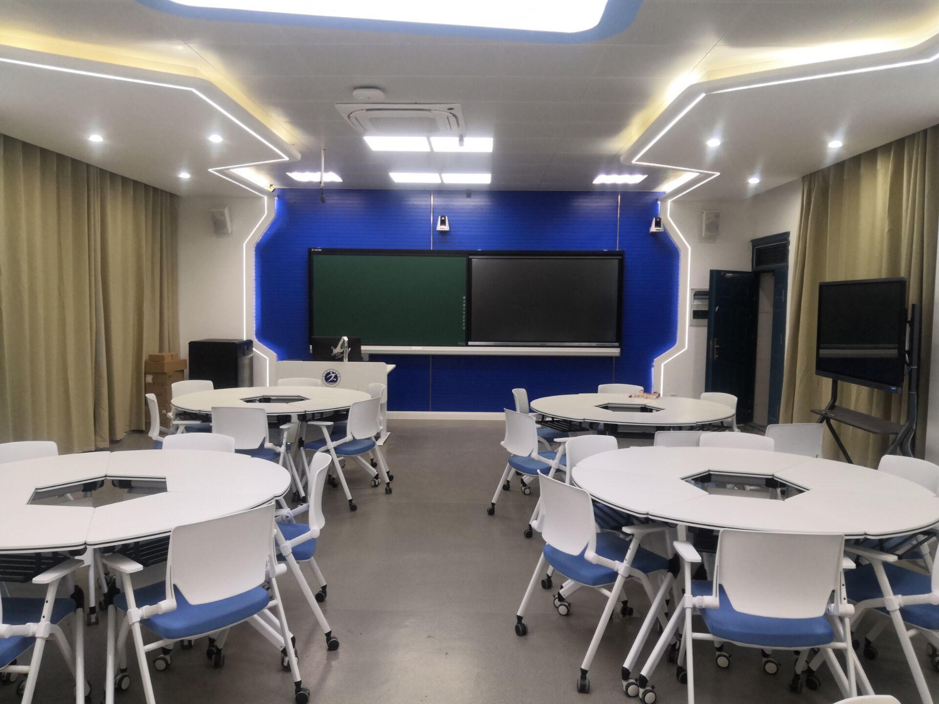1.智能设备:智能设备能够随时调控室内各类装置,空调、灯光、多媒体等,打造一个明亮、舒适、应用便捷的上课环境。