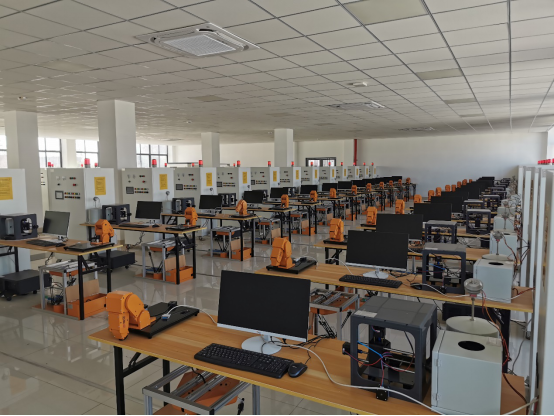 本实训室设备包含罗克韦尔PLC控制器、变频器、三轴写字机、模拟量温度风冷过程控制、小型手臂机器人、小型并联机器人、大型工业级并联机器人等设备。涉及Studio 5000、FactoryTalk Gateway、RSLogix 5 English、RSLogix 5000 Tools等23种工业控制软件。通过实验实训,培养学生方案设计能力、图纸设计能力、程序设计能力,提升学生安全工作意识和规范操作等职业素养。