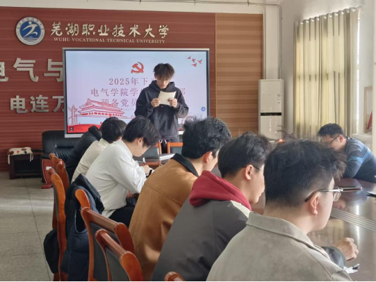 电气与自动化学院学生党支部分别于2025年10月15日和11月26日,在电气楼408党员活动中心召开预备党员转正大会,讨论耿昊等4名预备党员转正事宜。会议由学院学生第二党支部书记史慧敏主持,学生第二党支部老师、全体学生党员和待转正的预备党员参加会议。
