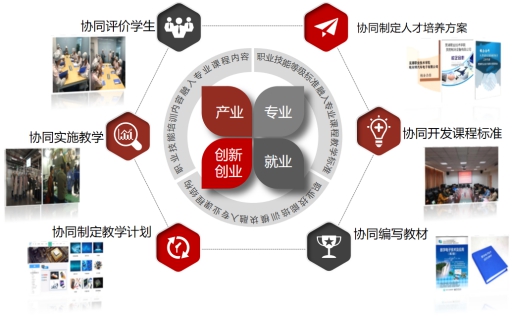 成果平台共建:共建省级质量工程校企实践基地项目、协同创新中心,将企业真实生产环境和技术项目引入校园,实现“教学环境与岗位工作环境‘零距离’对接”。