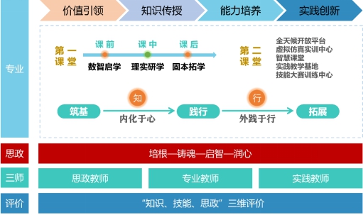 人才培养体系重构(双堂):构建“课程思政+专业教育+实践育人”三维体系,将第二课堂活动纳入人才培养方案,计算学分,实现系统化管理。